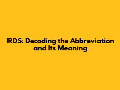IRDS: Demystifying The Abbreviation And Its Significance