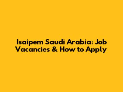 Isaipem Saudi Arabia: Job Vacancies & How To Apply