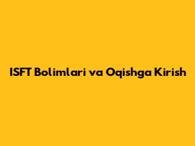 ISFT Bo'limlari Va O'qishga Kirish