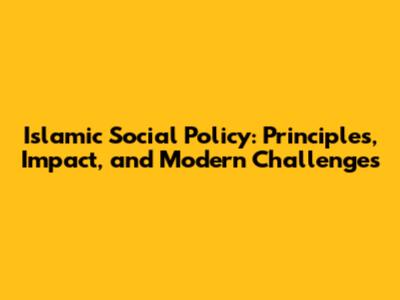 Islamic Social Policy: Principles, Impact, And Modern Challenges
