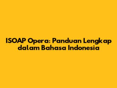 ISOAP Opera: Panduan Lengkap Dalam Bahasa Indonesia