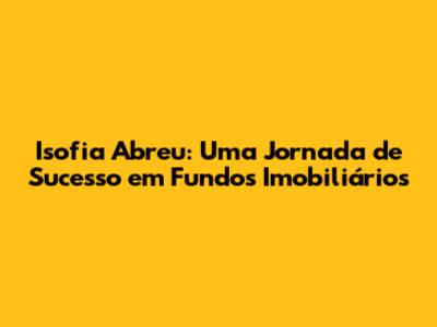Isofia Abreu: Investindo Em Fundos Imobiliários Com Sucesso