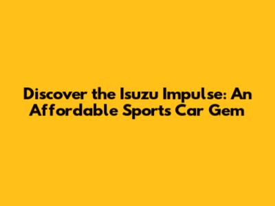 The Isuzu Impulse: A Unique Sports Car for the Savvy Buyer