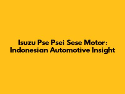 Isuzu Pse Psei Sese Motor: Indonesian Automotive Insight