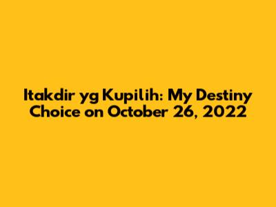 Itakdir Yg Kupilih: My Destiny Choice On October 26, 2022