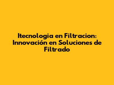 Itecnologia En Filtracion: Innovación En Soluciones De Filtrado