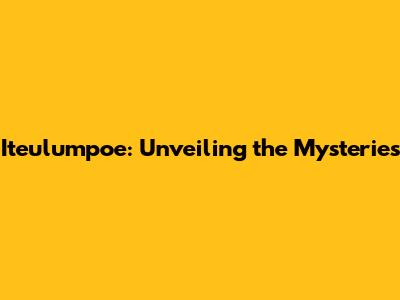 Iteulumpoe: Unveiling The Mysteries