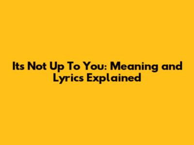 It's Not Up To You: Meaning And Lyrics Explained