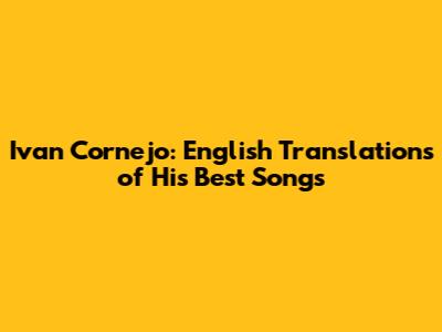 Ivan Cornejo: English Translations Of His Best Songs