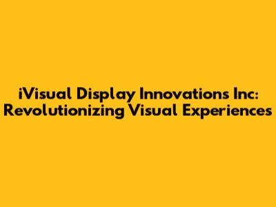IVisual Display Innovations Inc: Revolutionizing Visual Experiences