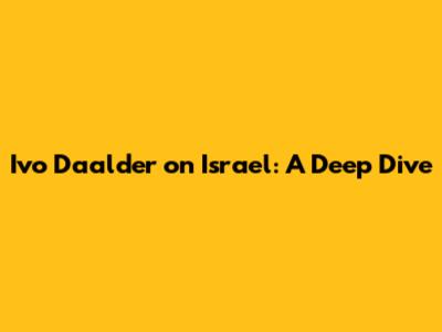 Ivo Daalder On Israel: A Deep Dive