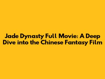 Jade Dynasty Full Movie: A Deep Dive Into The Chinese Fantasy Film
