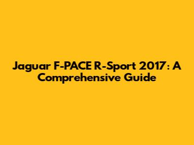 Jaguar F-PACE R-Sport 2017: A Comprehensive Guide