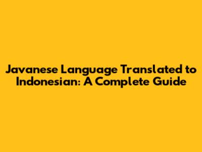 Javanese Language Translated To Indonesian: A Complete Guide