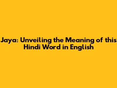 Jaya: Unveiling The Meaning Of This Hindi Word In English