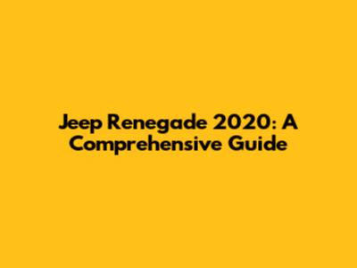 Jeep Renegade 2020: A Comprehensive Guide