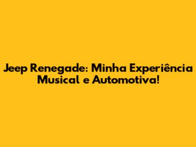 Jeep Renegade: Minha Jornada Musical E Automotiva!