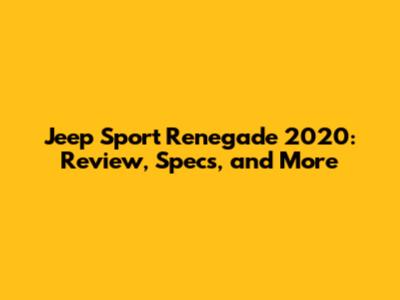 Jeep Sport Renegade 2020: Review, Specs, And More