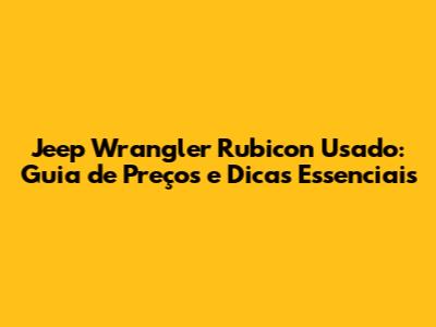 Jeep Wrangler Rubicon Usado: Guia De Preços E Dicas Essenciais