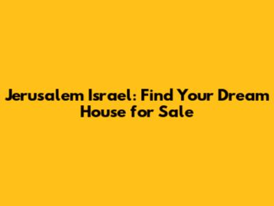 Jerusalem Israel: Find Your Dream House For Sale