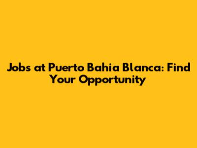 Jobs At Puerto Bahia Blanca: Find Your Opportunity