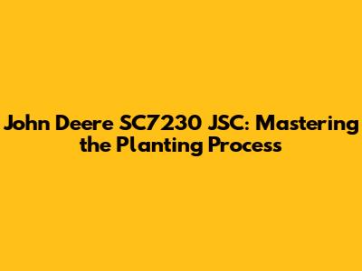 John Deere SC7230 JSC: Mastering The Planting Process