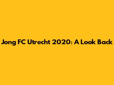 Jong FC Utrecht 2020: A Look Back