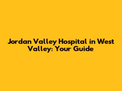 Jordan Valley Hospital In West Valley: Your Guide
