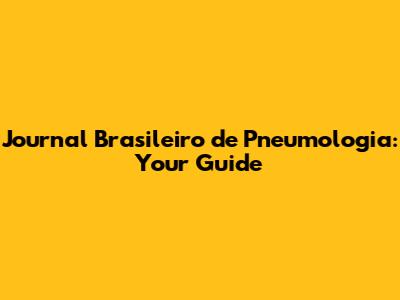Journal Brasileiro De Pneumologia: Your Guide
