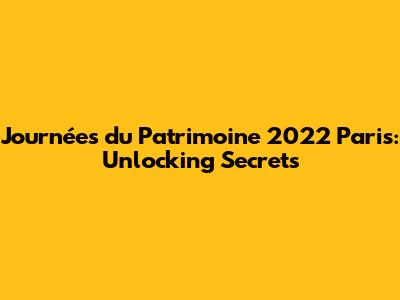 Journées Du Patrimoine 2022 Paris: Unlocking Secrets