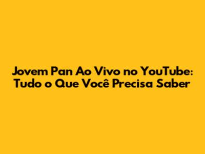 - Como faço para assistir à Jovem Pan ao vivo no YouTube? Basta acessar o canal oficial da Jovem Pan News no YouTube e procurar pela transmissão ao vivo.