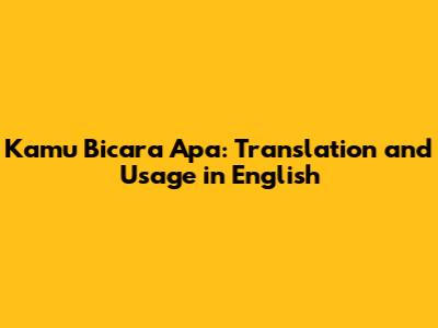 Kamu Bicara Apa: Translation And Usage In English