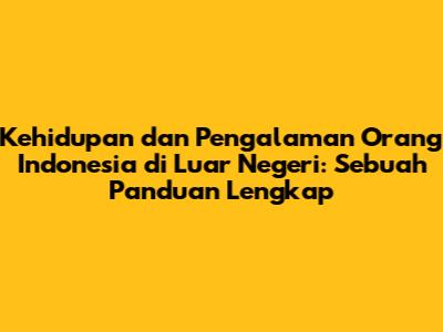 Kehidupan & Pengalaman Orang Indonesia Di Luar Negeri