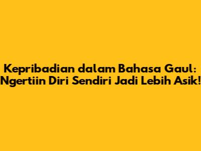 Jadi, jangan ragu buat explore diri sendiri. Gunakan bahasa gaul untuk membuat prosesnya lebih seru dan mudah dipahami. Ingat, setiap orang punya kepribadian yang unik dan menarik. Be yourself, be proud, dan teruslah belajar untuk menjadi pribadi yang lebih baik!