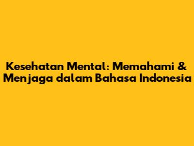 Kesehatan Mental: Memahami & Menjaga Dalam Bahasa Indonesia