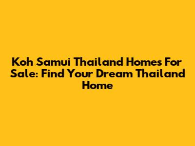 Koh Samui Homes For Sale: Find Your Dream Thailand Home