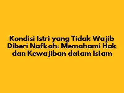Kondisi Istri Yang Tidak Wajib Diberi Nafkah: Memahami Hak Dan Kewajiban Dalam Islam