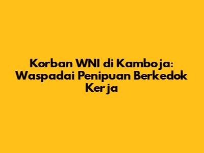 Guys, pernah dengar berita soal Warga Negara Indonesia (WNI) yang jadi korban di Kamboja? Ini bukan cerita main-main, lho. Banyak banget WNI kita yang tergiur iming-iming gaji besar dan kehidupan mewah di sana, tapi malah berakhir jadi korban penipuan berkedok pekerjaan. Serem banget kan? Artikel ini bakal ngupas tuntas soal apa aja sih yang perlu kita waspadai biar nggak jadi korban berikutnya. Penting banget nih buat kalian yang mungkin punya kenalan atau bahkan berencana cari kerja di luar negeri, terutama di Kamboja. Kita harus saling ngingetin biar nggak ada lagi WNI yang bernasib nahas di sana. Siapin kopi atau teh kalian, mari kita bedah satu per satu.