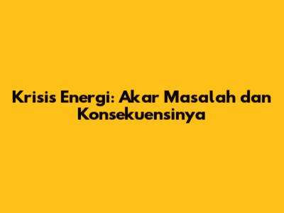 Krisis Energi: Akar Masalah Dan Konsekuensinya