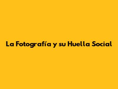 La Fotografía Y Su Huella Social