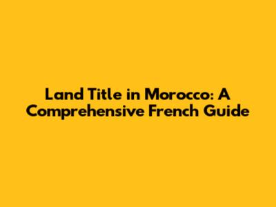 Land Title In Morocco: A Comprehensive French Guide