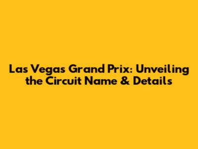 Las Vegas Grand Prix: Unveiling The Circuit Name & Details