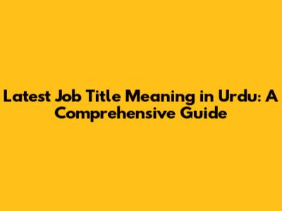 Latest Job Title Meaning In Urdu: A Comprehensive Guide