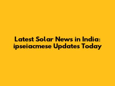 Latest Solar News In India: Ipseiacmese Updates Today