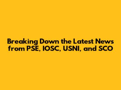 Latest Updates: PSE, IOSC, USNI, And SCO News