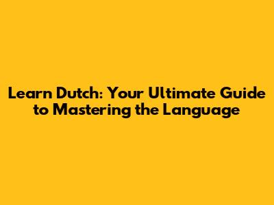 Learn Dutch: Your Ultimate Guide To Mastering The Language
