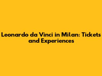 Leonardo Da Vinci In Milan: Tickets And Experiences