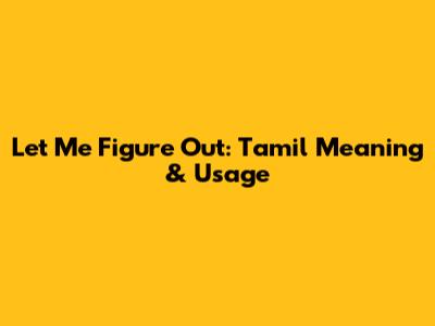 Let Me Figure Out: Tamil Meaning & Usage