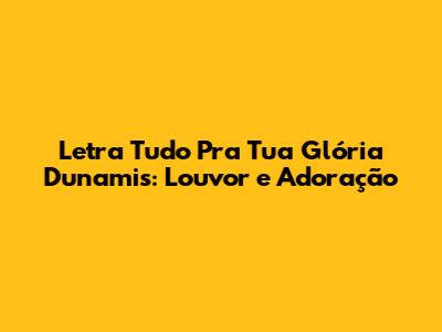 Letra Tudo Pra Tua Glória Dunamis: Louvor E Adoração