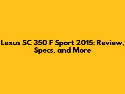Lexus SC 350 F Sport 2015: Review, Specs, And More
